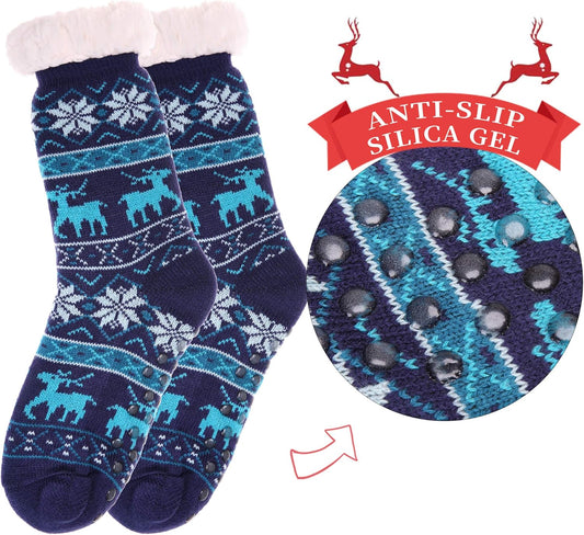 Slipper Socks for Women with Grippers, Winter Warm Fuzzy Indoor Christmas Gifts Socks
