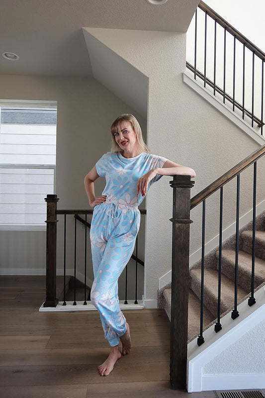 Womens Pajamas Set Short Sleeve Cute Printed Tops and Pants 2 Piece PJ Sets Joggers Loungewear Sleepwear with Pockets